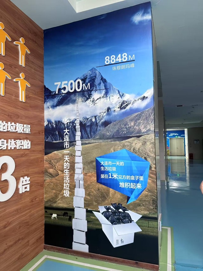 针对垃圾产生量逐年增加的现状,展区以“大连市一天的生活垃圾装在1米见方的盒子里,堆积起来堪比珠穆朗玛峰”的比喻震撼人心。团队成员由此联想到农村垃圾“随手丢、露天烧”的问题,计划将城市“集中处理+资源回收”模式因地制宜改造:建议村里设立垃圾集中收集点,由专人定期转运至乡镇处理站,同时推广“厨余堆肥、废品回收”的庭院模式,降低处理成本。