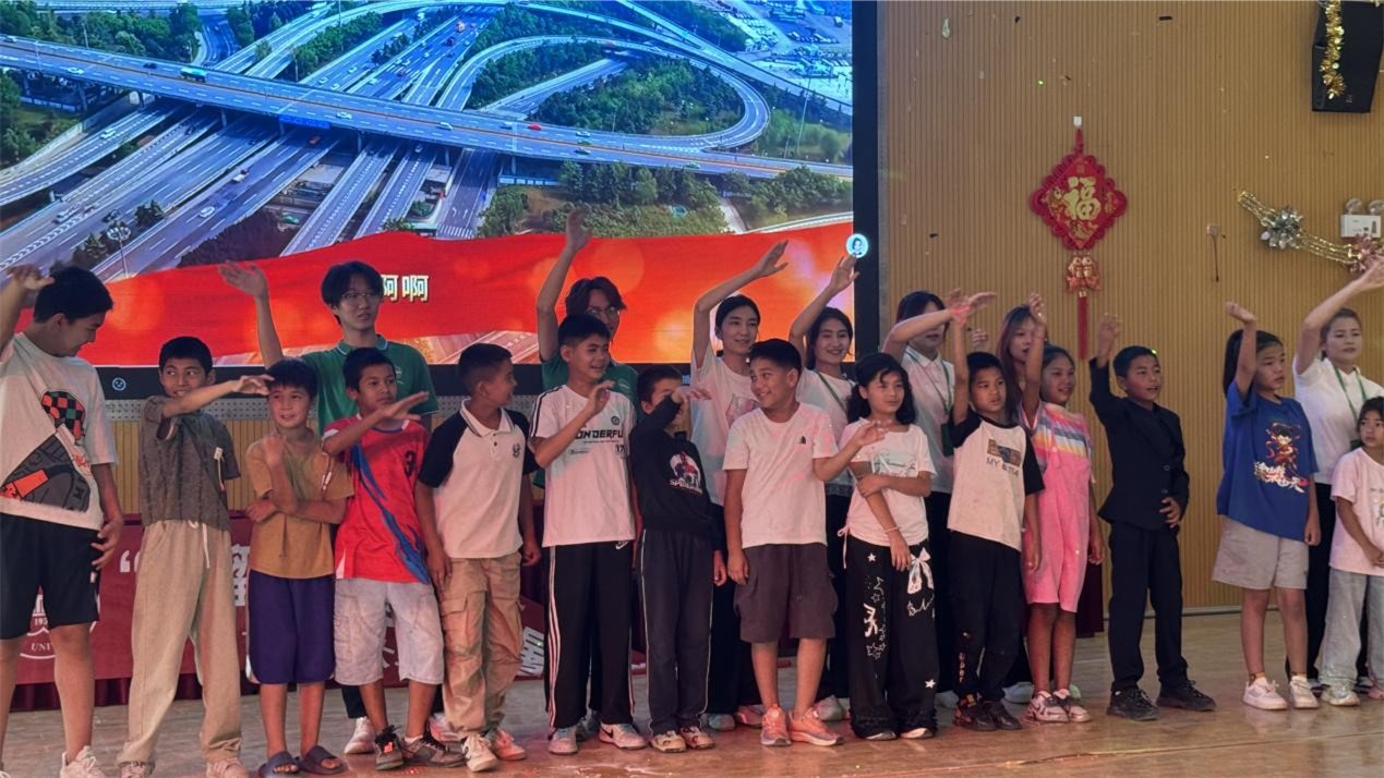 此外,实践队员们也带来了冬不拉《故乡》、孩子们也展示了舞蹈《蹦蹦跳跳》、歌曲《毒药》以及展示了学习到的化学小实验等节目。汇演尾声,全体成员上台共唱《我和我的祖国》,现场温情满满。