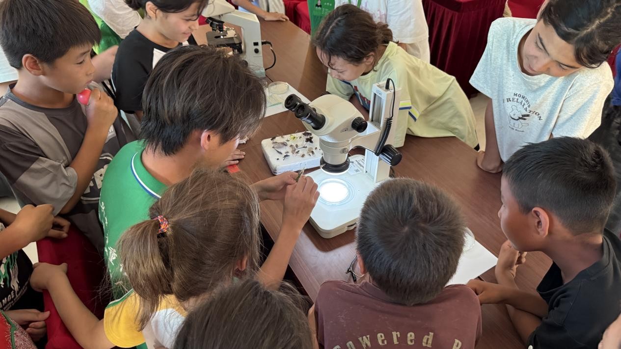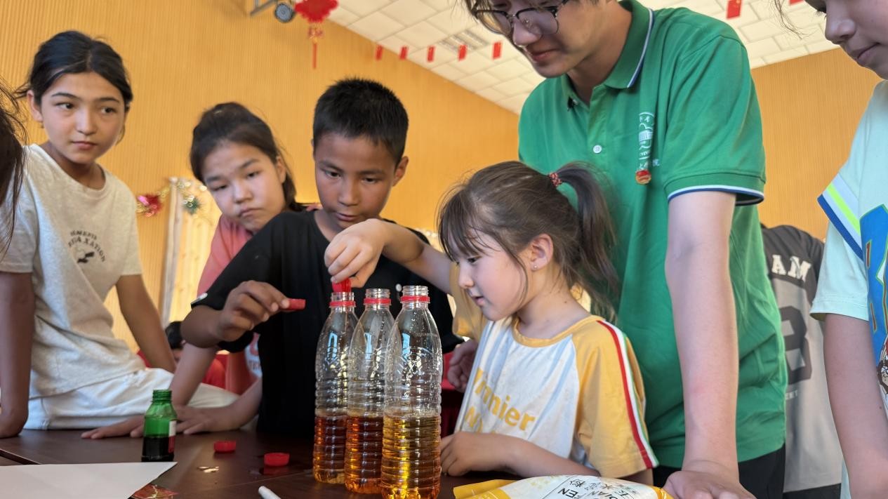 7月10日,石榴花开实践团队在托喀依乡亚苏克村带领当地小朋友们探索昆虫世界的奥秘,体验趣味化学实验的魅力。