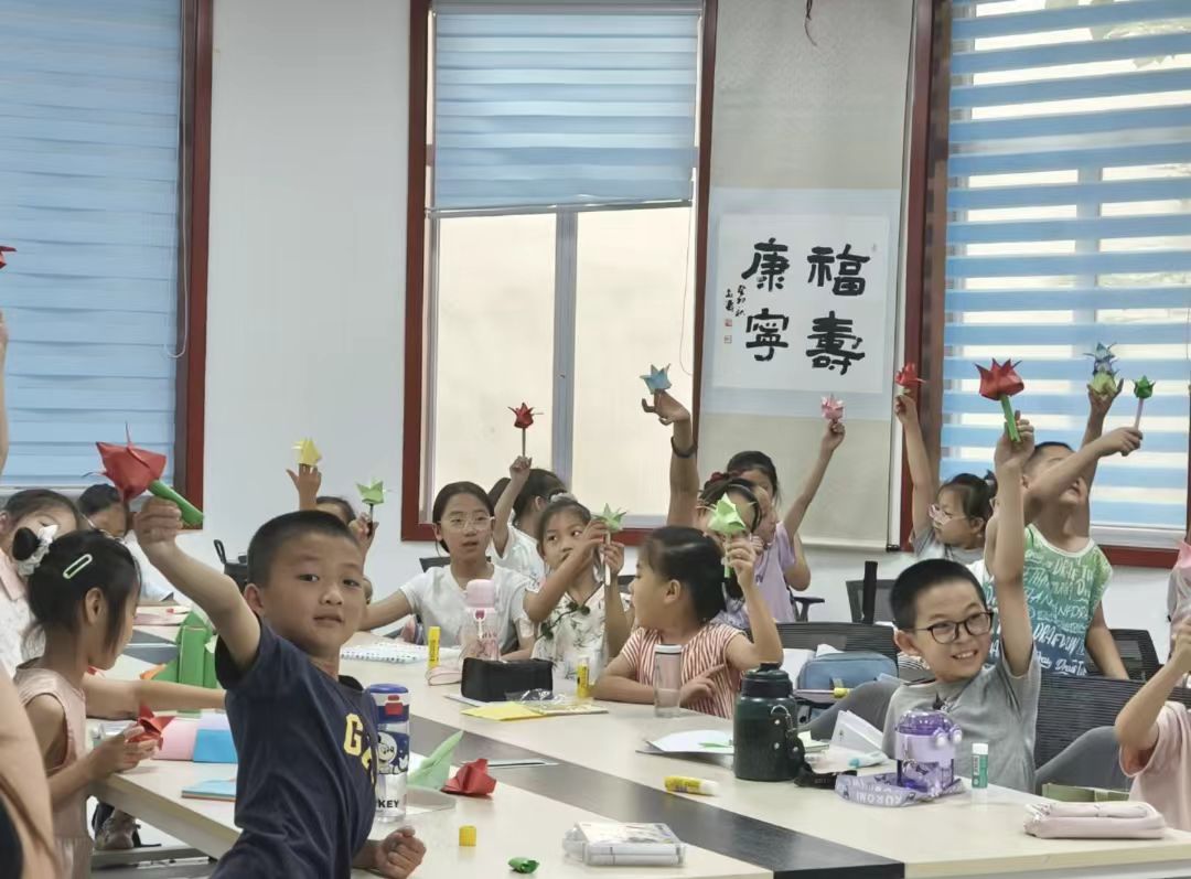 如今,托管班的墙上贴满了孩子们的作品:稚嫩的书法、五彩的拓印、折纸郁金香组成的“花海”,每一件都承载着夏日的记忆。当志愿者与孩子们围坐在一起,分享21天的收获时,社区负责人感慨道:“‘向阳花开’不仅是一个托管班,更是青年反哺社会的生动实践。”