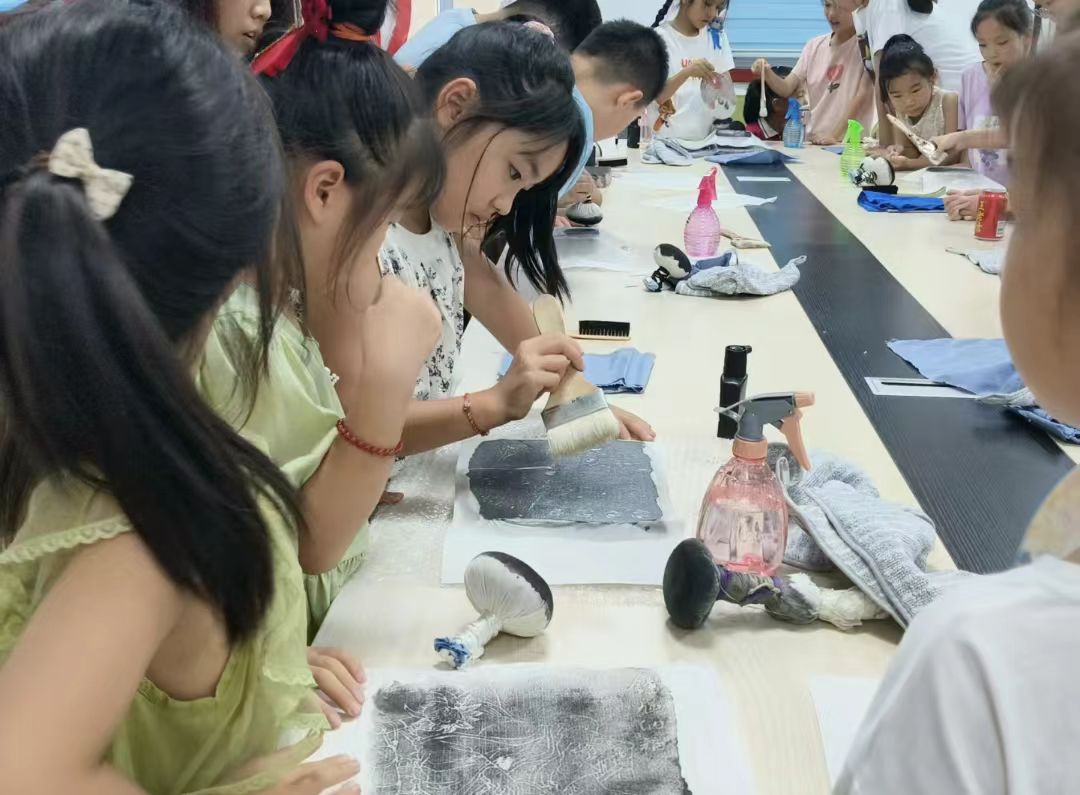 图为孩子们在非遗拓印课上,使用工具进行拓印体验。郑佩怡供图