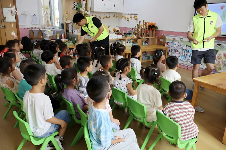 图为江苏科技大学海洋学院实践团成员在为小朋友宣讲。邹锦程 供图