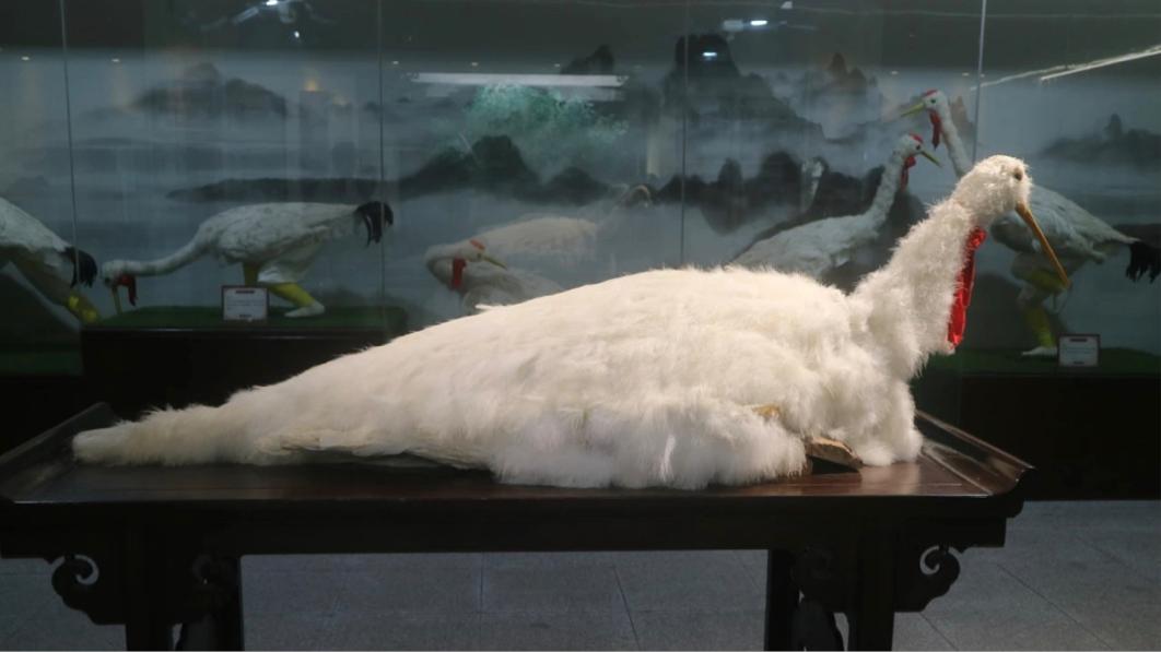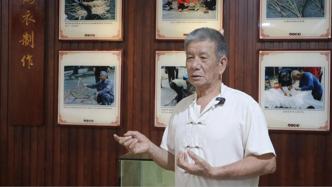 馆内珍藏的鹤舞道具与资料,系统展现了这一传统艺术的发展脉络。汤福文老人详细讲解了鹤舞的起源、仪式流程及文化寓意,介绍了“年三十制新鹤、开光念祝词、拜年送祝福、旧鹤衣“羽化”等传统习俗。三灶鹤舞以白鹤为象征,寄托着百姓对长寿、吉祥的美好愿景,其传承不仅是技艺的延续,更是文化精神的传递,让我们深切感受到传统艺术在当代的生命力。