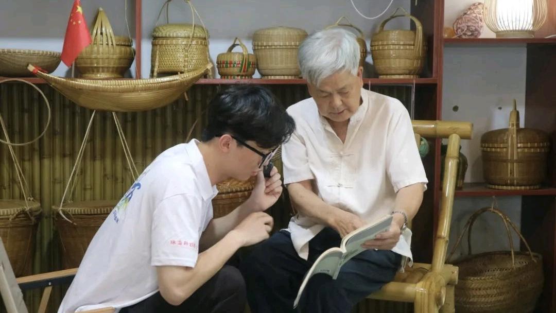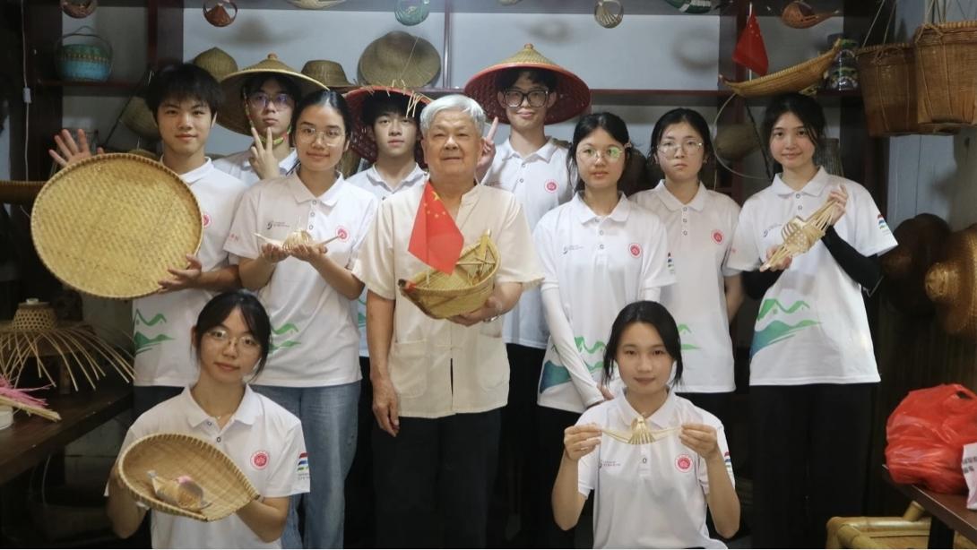 活动期间,我们走访了三灶竹编传承人汤何佳老人的工作室,近距离感受这项传统技艺的魅力。工作室中竹香浓郁,各类竹编成品、半成品及荣誉证书整齐陈列,见证了技艺的传承与发展。汤何佳老人详细介绍了三灶竹编的历史渊源、工艺特点及代表作品,并亲自指导我们体验竹编制作。在老人的耐心教学下,我们亲手完成了简易竹编小船,深刻体会到竹编技艺中蕴含的精巧构思与匠人精神,也认识到这项非遗技艺传承的重要性。