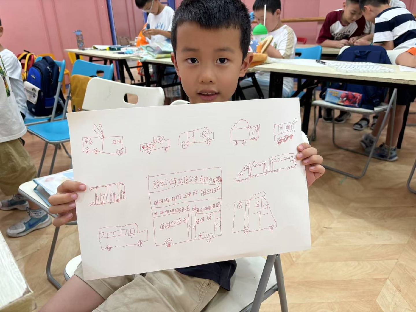 陪伴式成长书写双向奔赴针对内向学生小宇的特殊情况,志愿者林张鹏发现他总在绘画课上默默涂抹,便以绘画为切入点,从简单的线条勾勒到复杂的色彩搭配,一步步引导他创作。他们一起观察生活中不同的小汽车,勾勒车辆轮廓,小宇渐渐愿意在绘画时与李航交流想法。在结营仪式上,曾拒绝交流的小宇主动拿着自己画的《生活中的车辆》上台,讲解画中每个汽车的模样,其成长蜕变让志愿者热泪盈眶。课间开展的 "你画我猜"" 击鼓传花 " 等互动游戏,更成为拉近心灵距离的纽带。