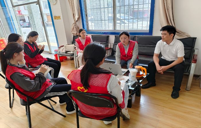 在村委会办公室里,大学生实践团成员们整齐坐在凳子上,认真听我们团的负责人和英家村村干部讲解实践工作安排。讲解重要信息时大家低头在笔记本上快速记录,时不时抬头看向讲解的村干部,目光专注,有人调整摄像机记录我们谈话的内容,有人在方案上补填信息,整个过程井然有序。我们通过村干部的重点讲解了解了英家村的红色旅游资源,中共广西省工委历史博物馆、六甲古街、红色戏台,为我们后续的实践调研奠定了一个非常大的基础。