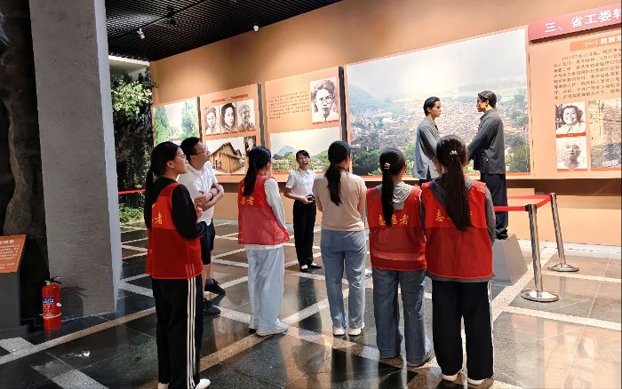 在展示英家起义相关文物的展柜前,成员们更是久久驻足。展柜里的步枪、传单、旧文件,每一件都诉说着那段惊心动魄的历史。讲解员指着一份泛黄的起义计划书,详细介绍着当时起义的筹备过程和重要意义。实践团的同学们听得格外认真,有人微微点头,似乎在默默消化着这些信息;有人举起手机,小心翼翼地拍下文物和旁边的说明文字,想要把这些珍贵的历史记忆留存下来。