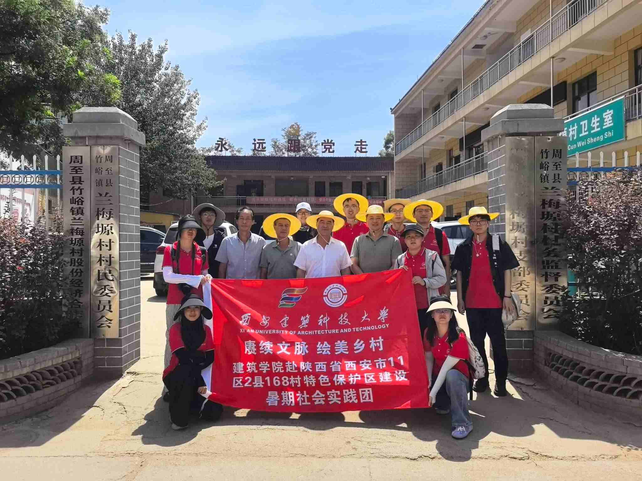2025年7月15日,西安建筑科技大学建筑学院赴陕西省西安市11区2县168村特色保护区建设暑期社会实践团的11名师生奔赴第六批中国传统村落——周至县兰梅塬村,在靳亦冰教授带领下开展深度调研,旨在挖掘其历史文化价值,为特色保护区建设提供专业支持。兰梅塬村党总支书记杨新社热情接待并详细介绍了村落概况。