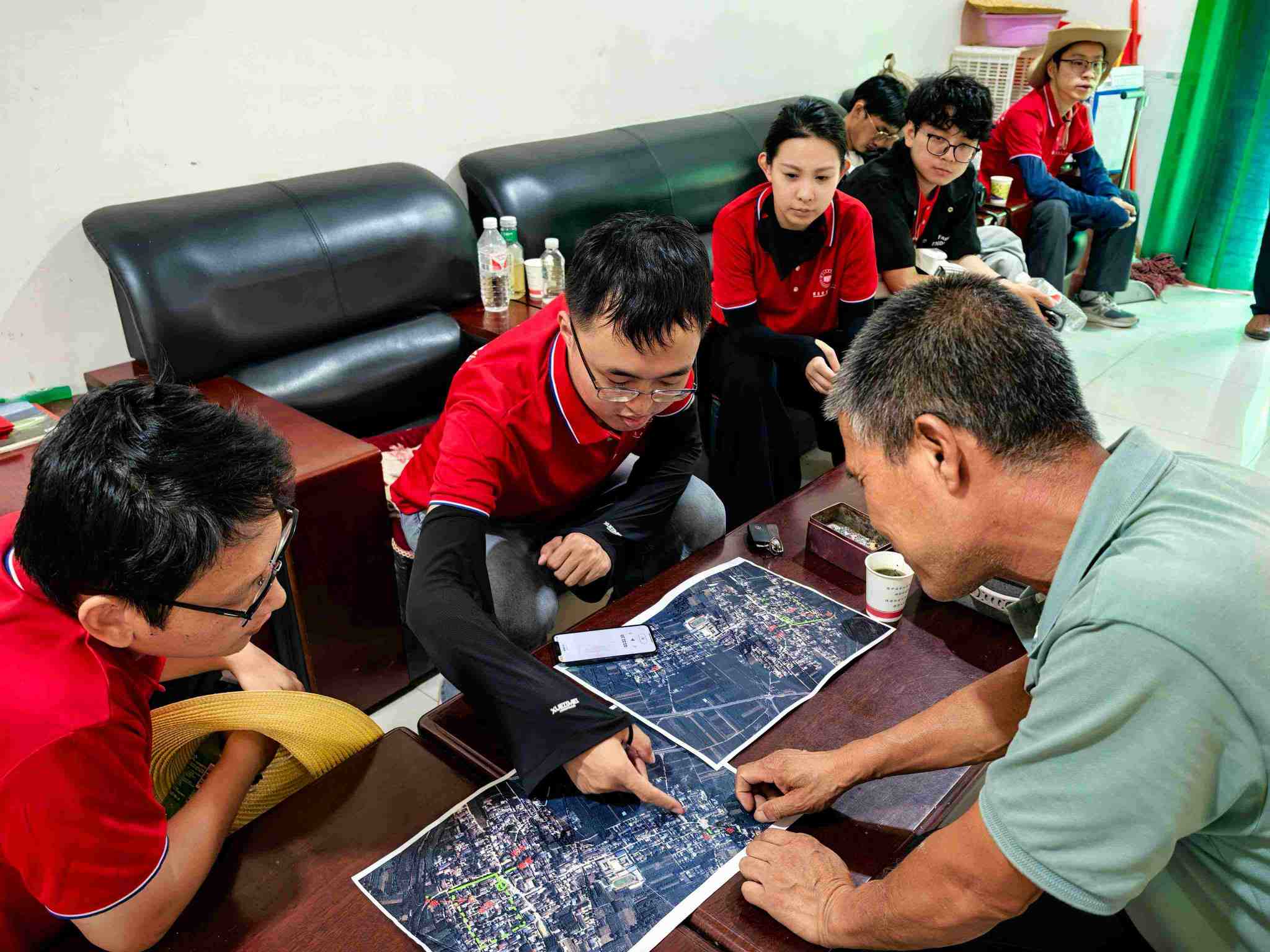 图为相关负责人向暑期社会实践团介绍村落概况。靳亦冰 供图