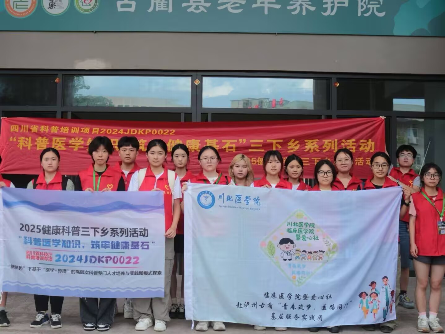 7月8日下午,古蔺县老年养护院内温情洋溢。川北医学院临床医学院“青春筑梦,医路同行”赴泸州古蔺三下乡实践队在此开展了“科普医学知识,筑牢健康基石”专题活动(项目编号:2024JDKP0022),将专业医学关怀送到老人身边。