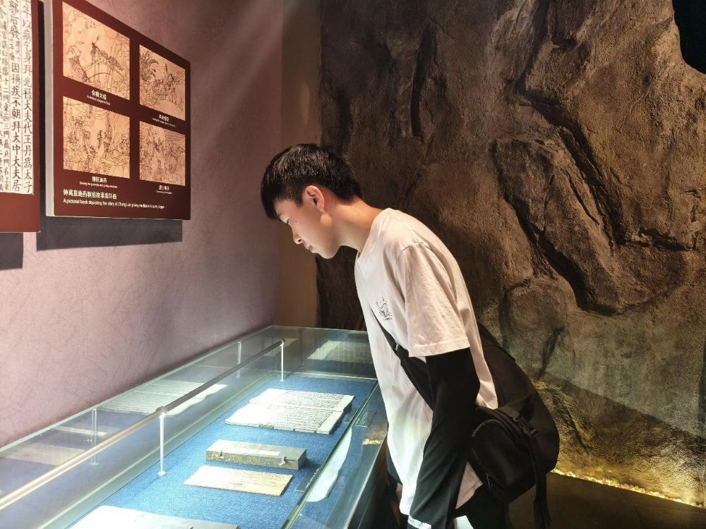 实践团成员邱靖茹担任讲解员,带领团队成员依次参观博物馆核心展区。从慈善思想厅入口365个“善”字对“日行一善”的生动诠释,到“混元三教九流图”展现的儒释道慈善思想交融;从慈善历程厅“泛舟之役”、药方洞复原等场景勾勒的先秦至1949年慈善事业脉络,到慈善组织厅仿古街道还原的福田院、同善会;从慈善人物厅张謇、白芳礼等跨越时空、民族、地域的慈善典范事迹,到灾难教育区汶川地震模型与急救互动科普的防灾救护知识,再到当代慈善厅系统呈现的港澳台同胞及海外华人华侨慈善成就。丰富详实的展陈,让团队成员沉浸式感受中华慈善文化的源远流长与博大精深。