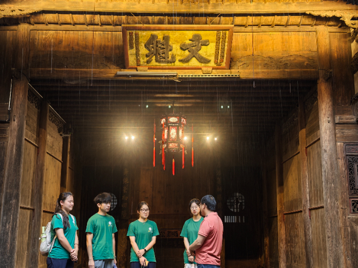 跟着讲解员,实践队走进了明清古厝群。雕梁画栋、飞檐翘角,这些不仅是精美的建筑,更是“会说话的历史书”。墙上的砖雕刻着家族故事,彩绘藏着民俗密码。讲解员告诉实践队,这些古厝不只是家,更是维系乡愁的纽带。如今,它们正从“老房子”变成“金钥匙”——独特的建筑艺术和文化价值,成了撬动乡村文旅经济的关键,为振兴提供着可持续的“造血”功能。