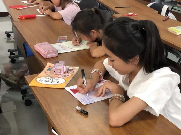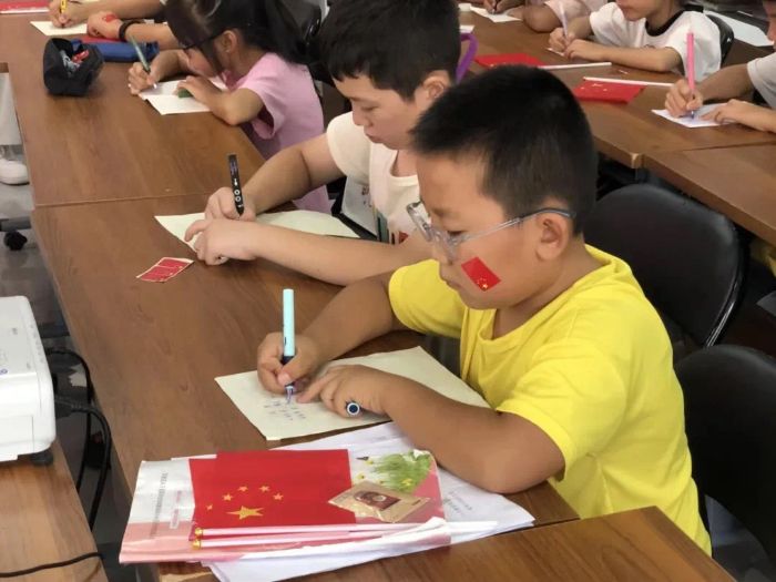 墨香课堂的“双语教学”。志愿者巧妙地将语言学习与中华优秀传统文化传承相结合,他们耐心细致地指导孩子们掌握正确的握笔姿势,从一笔一画开始学习汉字书写。志愿者在教授书写的同时,同步引导孩子们认读字音,将汉字的“形”与普通话的“音”紧密结合。志愿者们创新设计“形音义三位一体”教学法:当孩子们提笔书写“家”字时,志愿者同步讲解“宀”部象征屋檐、“豕”部代表牲畜的汉字演变故事,并引导反复诵读“jiā”的发音要点。8岁的李苗苗在宣纸上工整写下“国”字后,主动用普通话解释:这个字就像城墙围着玉,我们要像爱护珍宝一样爱护祖国。同学们沉浸在淡淡的墨香中,亲身体验着书写汉字的乐趣,对语言文字背后蕴含的文化魅力有了更直观、更深切的感受。