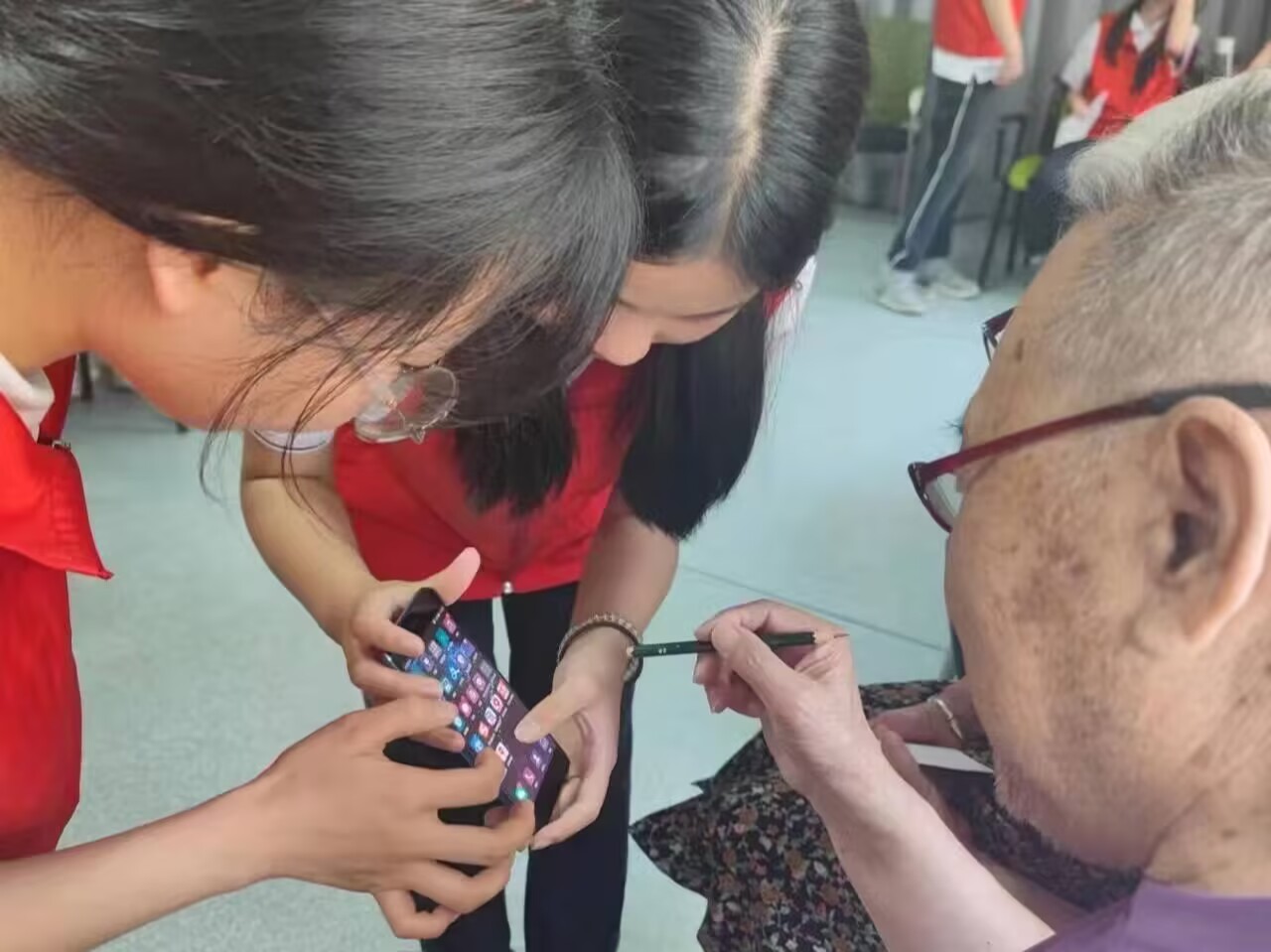 河南站点特别开设 “祖孙连线” 专项服务,帮助老人与外出务工子女视频通话。当屏幕里传来孙辈的笑声时,镇原县的老人颤抖着握住志愿者的手:“这下赶集卖菜再也不用带现金,还能天天见着娃了。”团队还为行动不便的老人提供上门服,发放防诈骗手册。