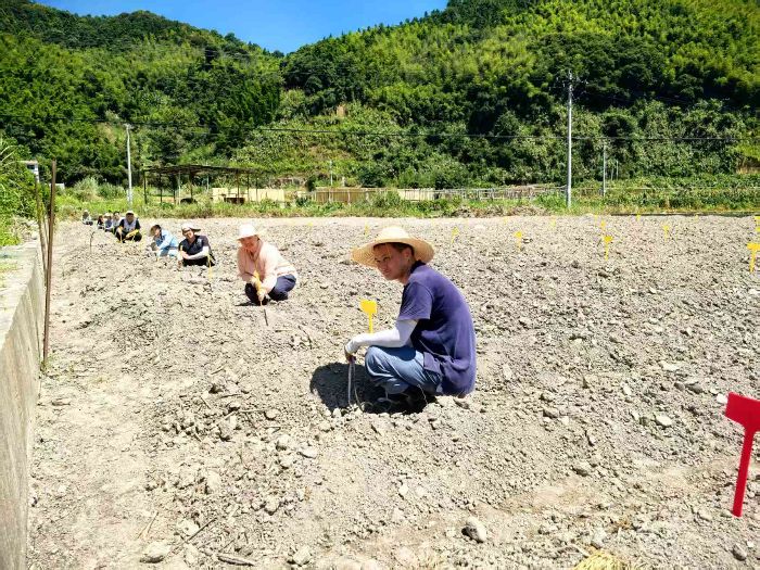 本次三下乡暑期实践活动,实践队来到福建省三明市尤溪县洋中镇后,便迅速投入到紧张而有序的工作中。在田间地头,队员们结合精心准备的资料,向当地农户详细解说各个品种诸如抗病强、口感好、甜度高等品质特点和口感优势,并同当地农户一起,将已经选育好的甘薯薯苗进行剪苗和种苗。实践现场队员们与农民忙得热火朝天。烈日下,队员手中的剪刀在灵活飞舞,锄头在轻巧挥动,他们专注着手中的每一个操作过程,小心对待着眼前健壮的薯苗,和农户一起,仔细调整间距和深度,将剪好的薯苗精准地栽种到土壤中。