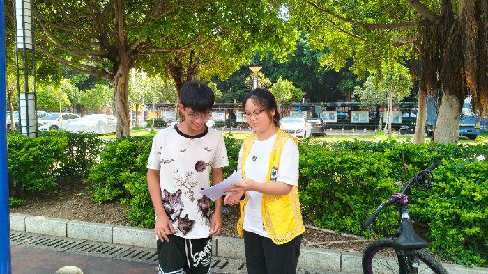 午饭期间成员们不断回想起周厂长的话,深知推广普通话的重要性。所以午饭后,团队负责人李队长,带我们到当地的社区公园为老人小孩推广普通话。 团队成员来到社区公园后,找到一个广西武鸣的小男孩,询问了男孩年纪、是否上学,是否在日常生活中说普通话等问题。问询过后,团队成员与小男孩进行了"说普通话"的小游戏,让小男孩说,广西壮族自治区,推广普通话等话测试他们的普通话标准程度。