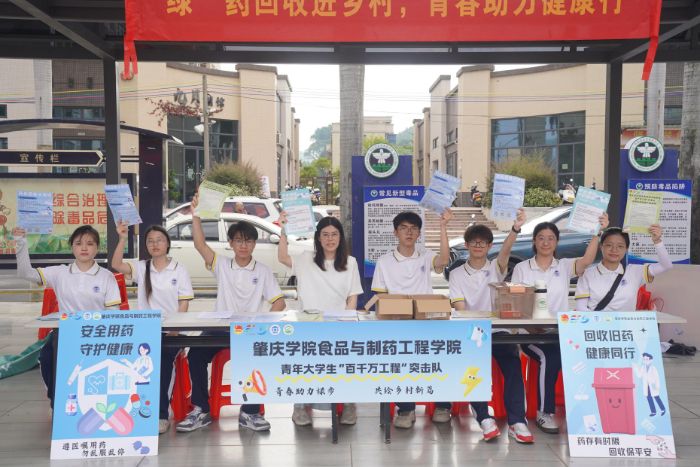 秉承着健康中国理念,实践团以“健康优先”为核心,7月16日上午在禄步镇文化广场设立“绿药回收进乡村,青春助力健康行”专项服务摊位,农村科技特派员吴秀兰副教授与学院团委副书记赵丹丹现场指导,制药专业的同学通过派发宣传手册和互动讲解,向村民阐释药品的分类知识及回收方法。本次活动采用“定点回收+流动宣传”创新模式:设置药品回收箱科学存放过期及临期药品,同时入户发放200余份宣传资料、开展问卷调研,并用“以药换药”的方式激励群众,向参与回收药品的居民赠送常用药及凉茶作为暖心回馈。虽然七月的广东骄阳似火,但通过队员们一天的努力,本次活动共回收过期药品30余盒,收集有效问卷151份。所有回收药品已移交食品与制药工程学院朱峻霄老师团队进行专业处理,用过期连花清瘟胶囊研究其环境溶出行为并进行生态风险评估,既消除了药品安全隐患,又促进了居民环保意识的提升。药品回收宣传既是“百千万工程”的基层实践,也彰显了高校服务乡村的担当,更推动了健康中国理念在禄步镇的普及。实践团以青春助力健康中国,如今这一行动已在当地扎根,想必未来也将持续守护群众健康。