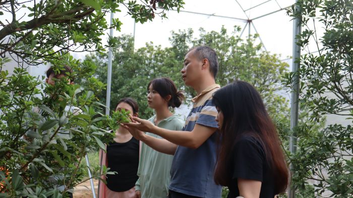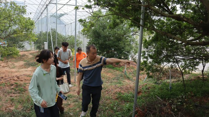 图12 庄书记带实践队考察大棚乌酥杨梅 柯楚燕摄