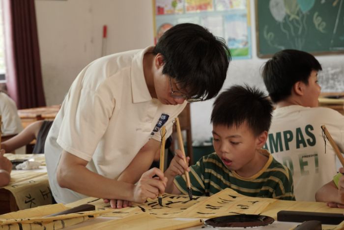 图4 实践队成员正在教授书法课 陈依淋摄