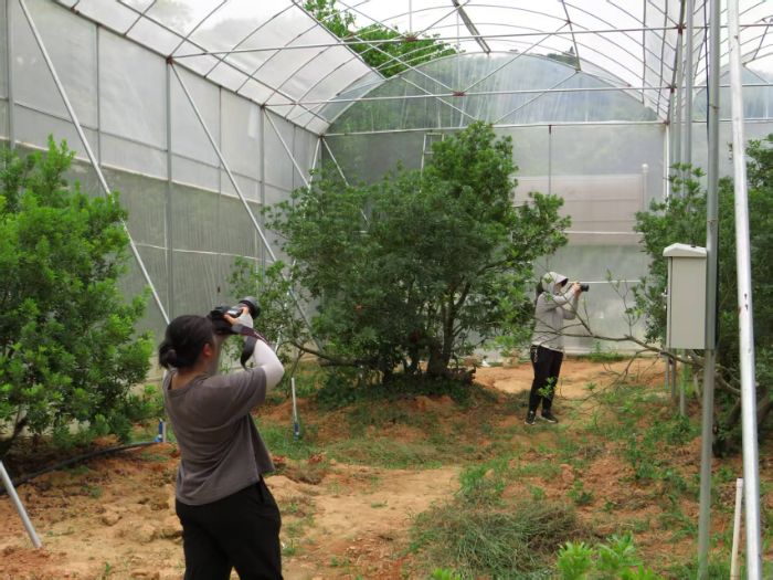 图2 突击队成员正在拍摄杨梅大棚 柯楚燕摄