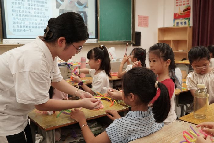 图8 学生正在进行扭扭棒手工制作 陈依淋摄