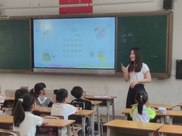 图5 实践队成员正在教授诗歌 陈依淋摄
