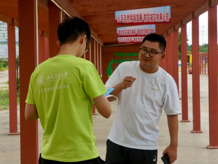 图为余雷向实践团介绍交易市场。储炙阳 摄