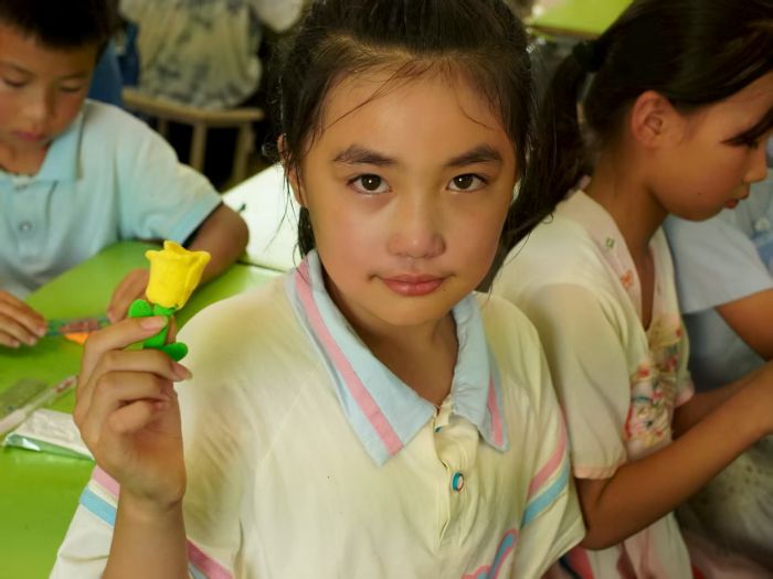 非遗,是流动在指尖的文化记忆,是写在孩子眼里的惊叹与热爱。为激发孩子们对中华优秀传统文化的兴趣,志愿团队特别开展了“非遗+手工”特色课堂,以“体验式+创作式”的方式,在科普非遗知识的基础上,让孩子们在动手实践中触摸传统之美。课堂上,志愿者们准备了钻石贴画、彩绘图案、手工黏土等材料,引导孩子们一边了解非遗技艺的背景故事,一边参与其中。