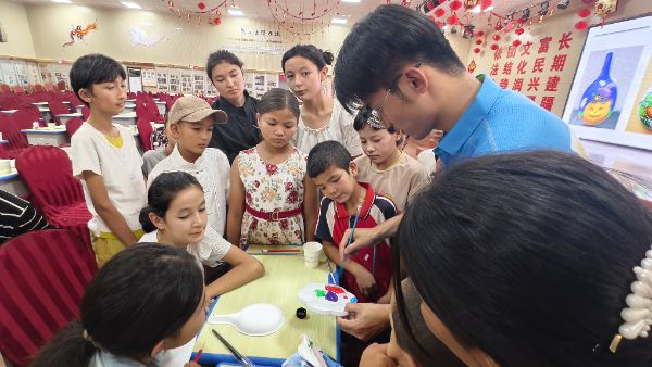 7月28日-30日,山东管理学院艺苑同行志愿服务团队走进喀什岳普湖县岳普湖乡,以马勺、木版年画、潍坊风筝、掐丝珐琅、山东琴书等非遗课程为载体,将齐鲁匠心与边疆风情深度交融。山管学子以专业技艺点燃传承薪火,用青春热忱浸润乡土课堂,赢得当地群众的由衷点赞。