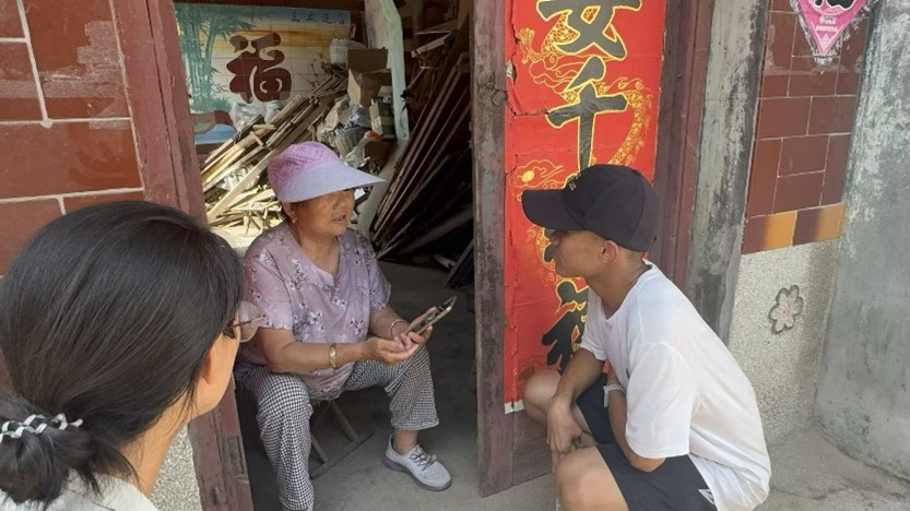 图为实践队队员采访村民。 张文善 供图