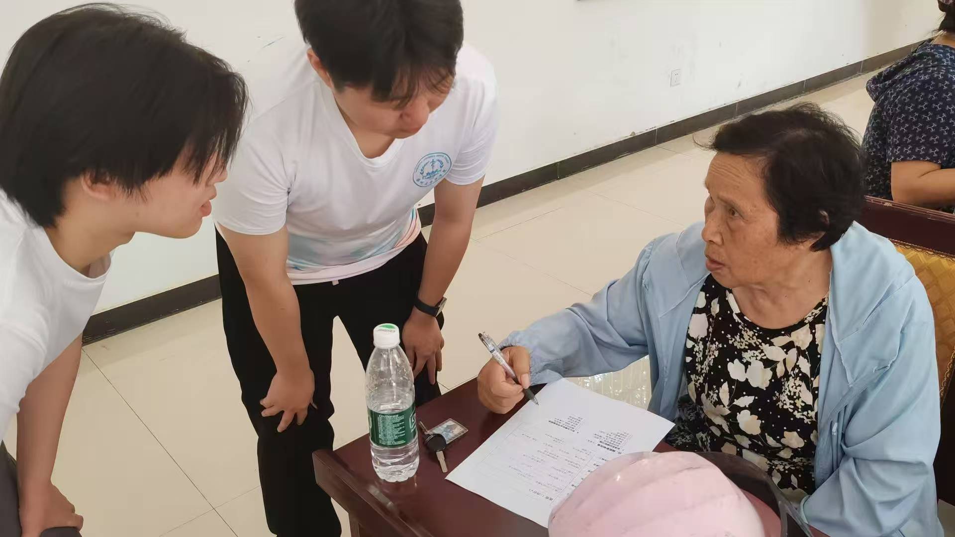 随后,实践团开展了健康调研活动。成员们为老人们发放精心设计的问卷,问卷涵盖睡眠质量、身体基础健康状况、日常健康习惯等多个方面。在填写问卷过程中,老人们遇到不懂的问题,实践团成员便俯下身,凑近老人,用通俗易懂的语言为其解释,确保问卷信息的准确收集。通过这些问卷,实践团旨在深入了解家乡老年群体的健康现状与需求,为后续更有针对性地开展健康服务提供依据。