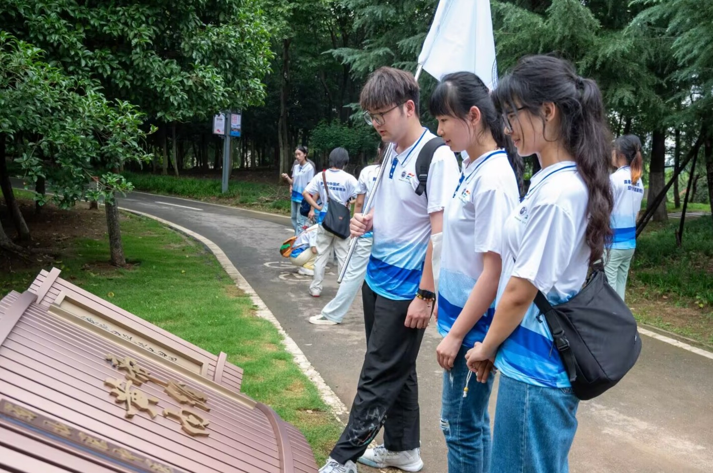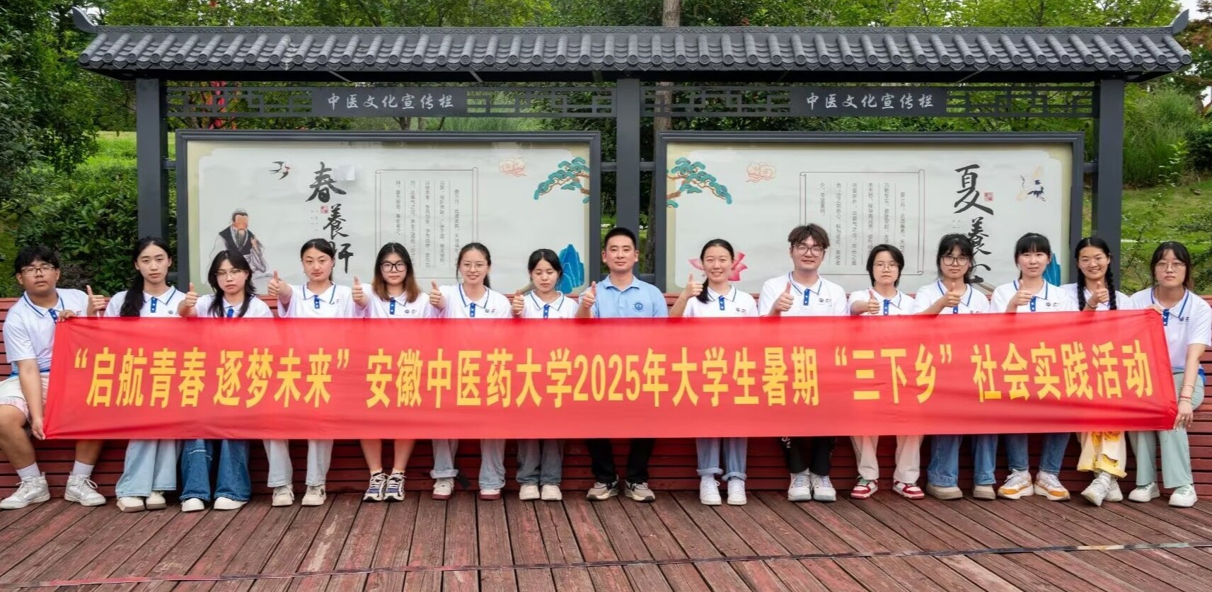 图为实践团成员在蜀山区中医药文化园合照。杨仪茗摄