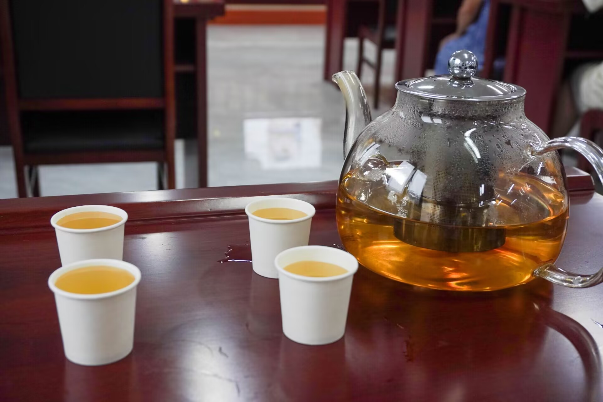 图为花茶体验区的花茶饮品。朱洁兰摄