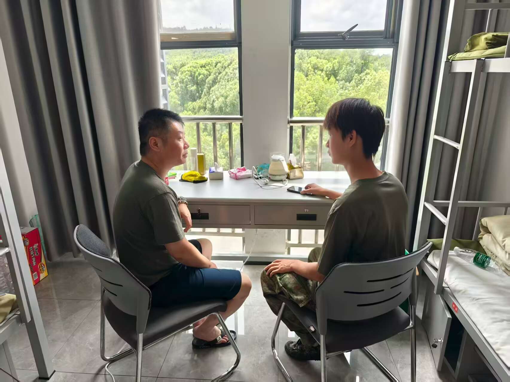 图为队员于训练间隙采访教官,盛丛斌供图。
