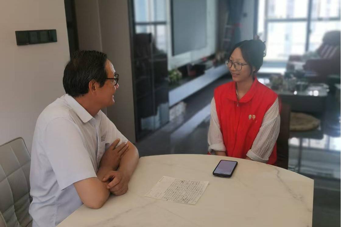 图为队员采访退伍军人成锡明老人,任慧文供图。