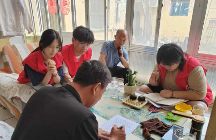 图为团队成员在农户家中进行土壤污染治理知识科普。王馨雅供图
