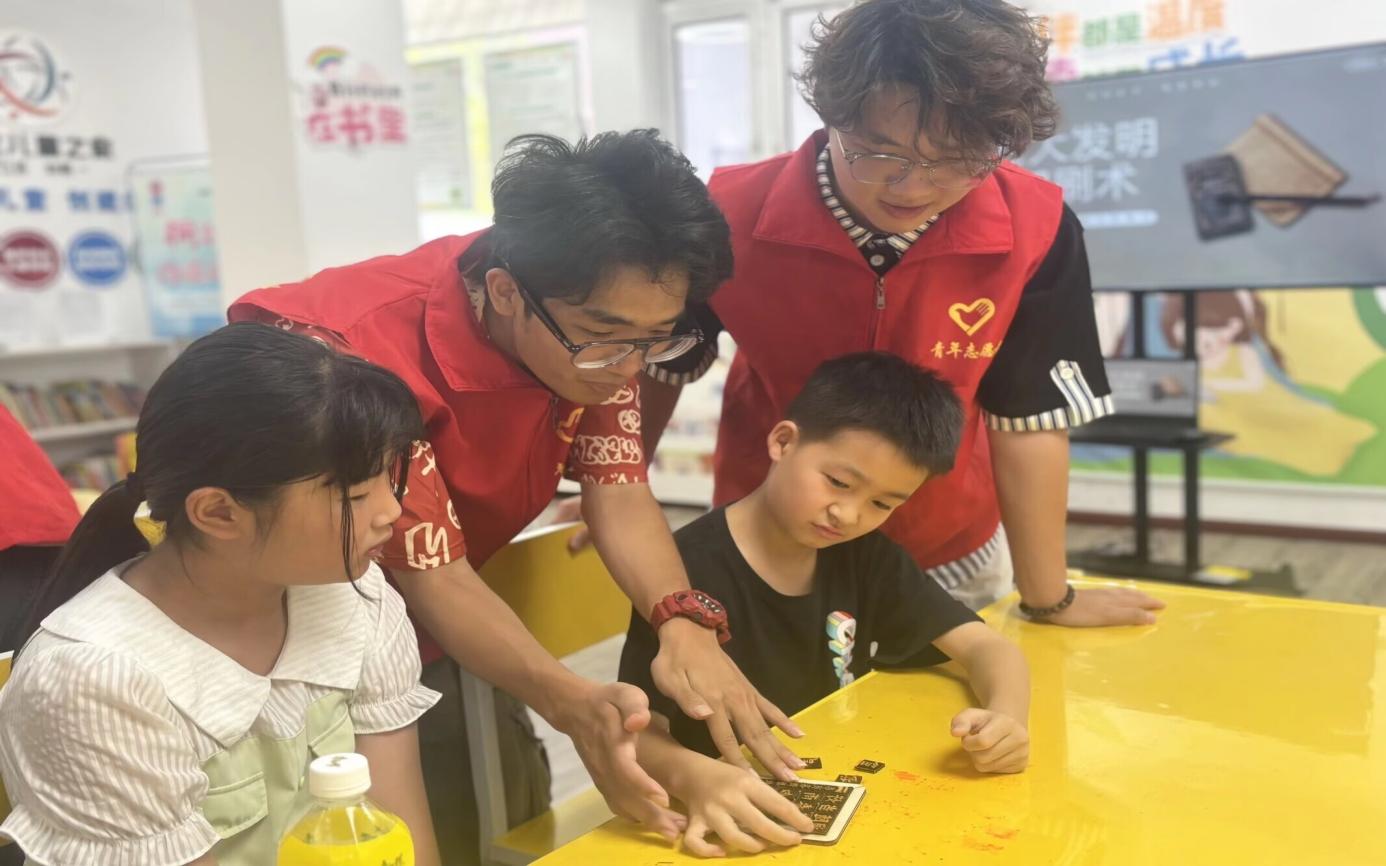 图为志愿者直到社区青少年排版活字 张圆圆供图