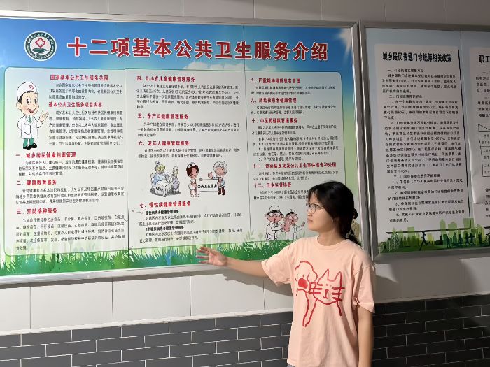 图为实践团成员吕昕怡在社区医院宣讲国家基本公共卫生服务。吕昕怡 供图