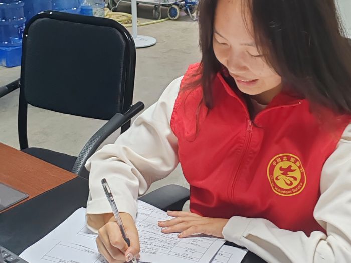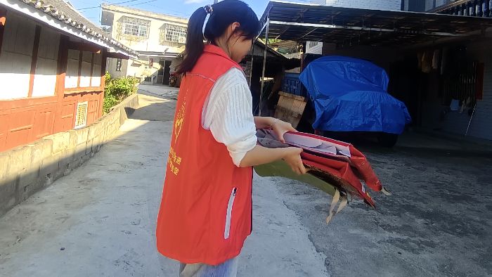 图为实践团成员晏文灵在社区登记社区基本情况。晏文灵 供图