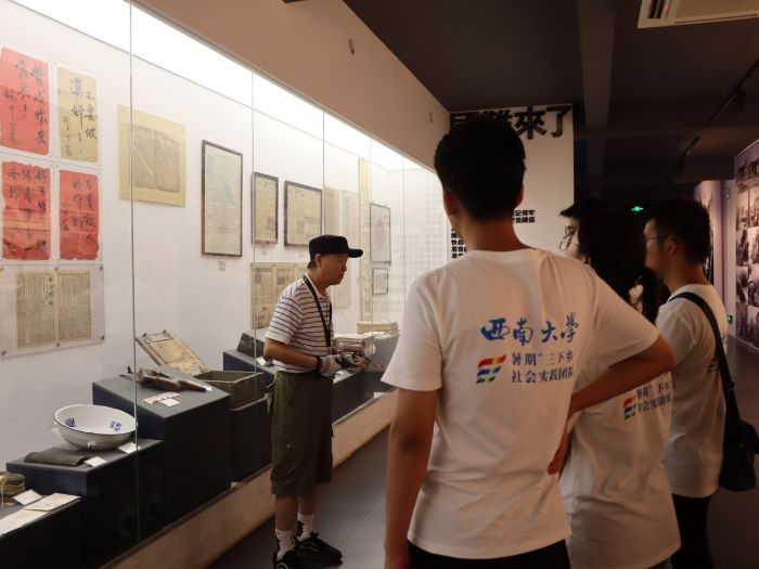 图为陈讲解员在南京民间抗日战争博物馆为团队成员们进行讲解。西南大学江苏南京砺行小分队供图