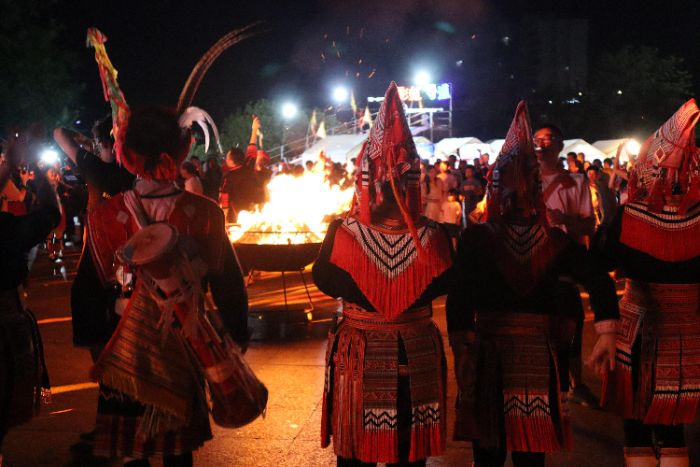 (图为活动现场的篝火表演。陈妙彤 摄)
