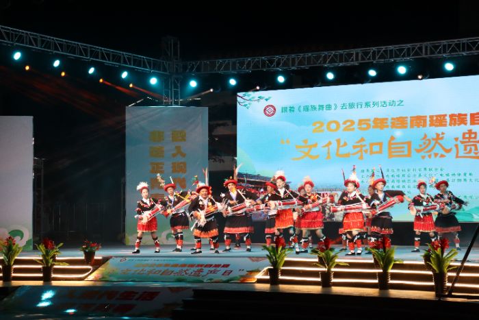 国家级非遗互动节目《瑶族婚俗》,与现场观众互动,让观众近距离感受传统婚俗魅力;唐百养三妹演唱《绣花曲》、民族歌舞团女子群舞《瑶绣》,将瑶族刺绣文化融入艺术表演。