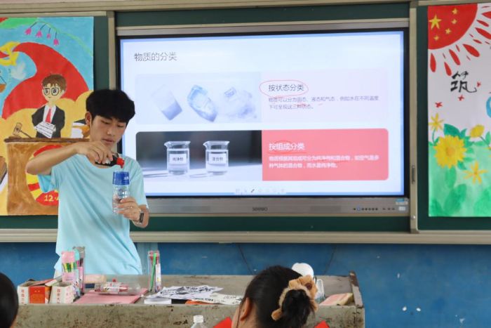 科学课上的奇妙体验深深吸引了孩子们,当那个充满奥秘的实验呈现出令人惊叹的现象时,他们眼中闪烁着好奇与兴奋的光芒。课程结束后,一群孩子簇拥着实践团的成员,叽叽喳喳地分享着内心的喜悦。