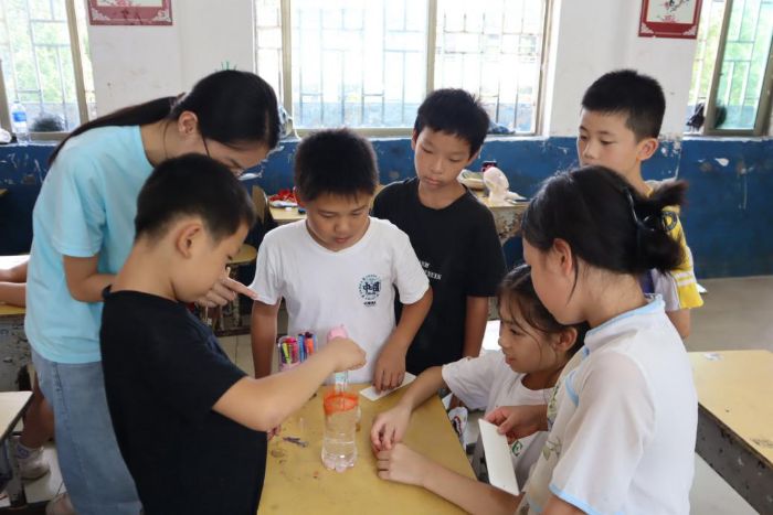 “快看!针真的浮在水上了!”7月14日上午,湖南省郴州市永兴县七甲乡中心学校的教室里传来阵阵惊呼。来自湖南工程学院“星耀七甲·筑梦童行”关爱留守儿童志愿服务团队在这里开展了一堂以“水的张力”为主题的科学实验课,用简单有趣的实验让乡村孩子们直观感受科学的神奇。