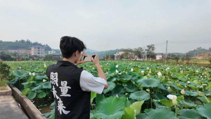 匠心独运:创意凝练铸就两大文创IP 为深度梳理村中荷花池与格木古树承载的自然与人文价值,实践团深入实践地进行踩点调研,用镜头定格夏日莲花的绽放姿态与苍劲挺拔的树影。同时,团队通过查阅地方文献和网络资料,深入挖掘两大景观背后的自然特征与文化故事,为文旅IP形象设计积累丰富素材。