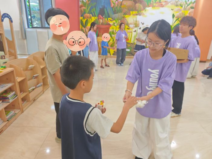 次日,同学们走进福利院,开启温馨陪伴之旅。一到福利院,大家就热情地和小朋友们打招呼,随后迅速分组,一同玩起各类游戏。“萝卜蹲”游戏中,小朋友们反应敏捷,现场满是欢声笑语,大家也因此愈发熟络。游戏结束,同学们送上精心准备的礼物,有可爱玩偶、精美图书和彩色画笔等。小朋友们拿到礼物兴奋极了,纷纷向同学们致谢。看着孩子们开心的样子,同学们内心满是成就感与幸福感。紧接着,同学们发挥特长教小朋友跳舞。从动作分解,到纠正姿势,大家始终耐心热情。小朋友们学得认真,小小的身影随音乐舞动,脸上洋溢着灿烂笑容。