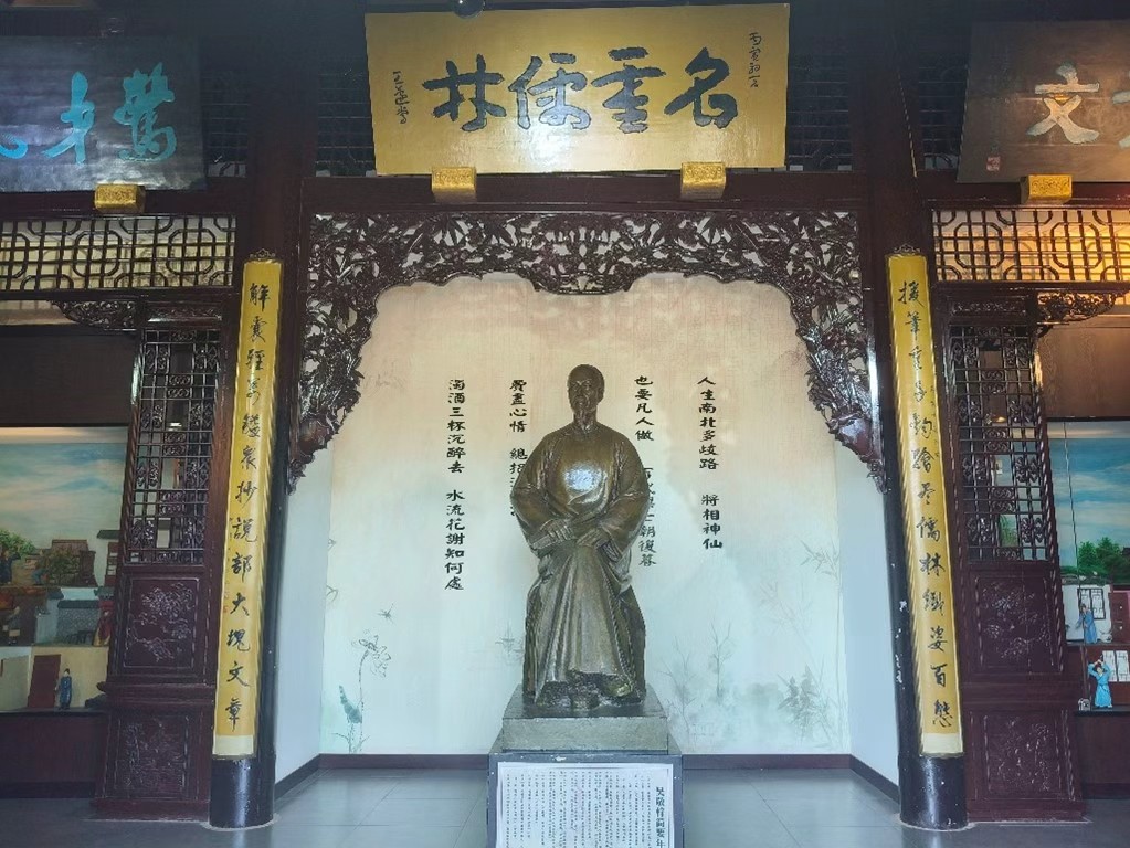 穿过古色古香的门楼,讲解员的声音为我们推开了时光的大门。在吴敬梓生平展区,泛黄的族谱、复刻的书案、旧时的科举试卷,串联起一位文人跌宕起伏的一生。从家族鼎盛时的锦衣玉食,到家道中落后的寄人篱下;从少年科举的意气风发,到屡试不第的寒心彻骨;从安徽全椒的故土难离,到移居南京后的笔耕不辍——这些看似零散的人生片段,在讲解员的串联下逐渐清晰。团队成员们时而驻足凝视老照片里的故居遗址,时而低头记录关键时间节点,忽然读懂:正是这份亲历的世态炎凉,让吴敬梓笔下的儒林群像有了刺破纸背的真实。