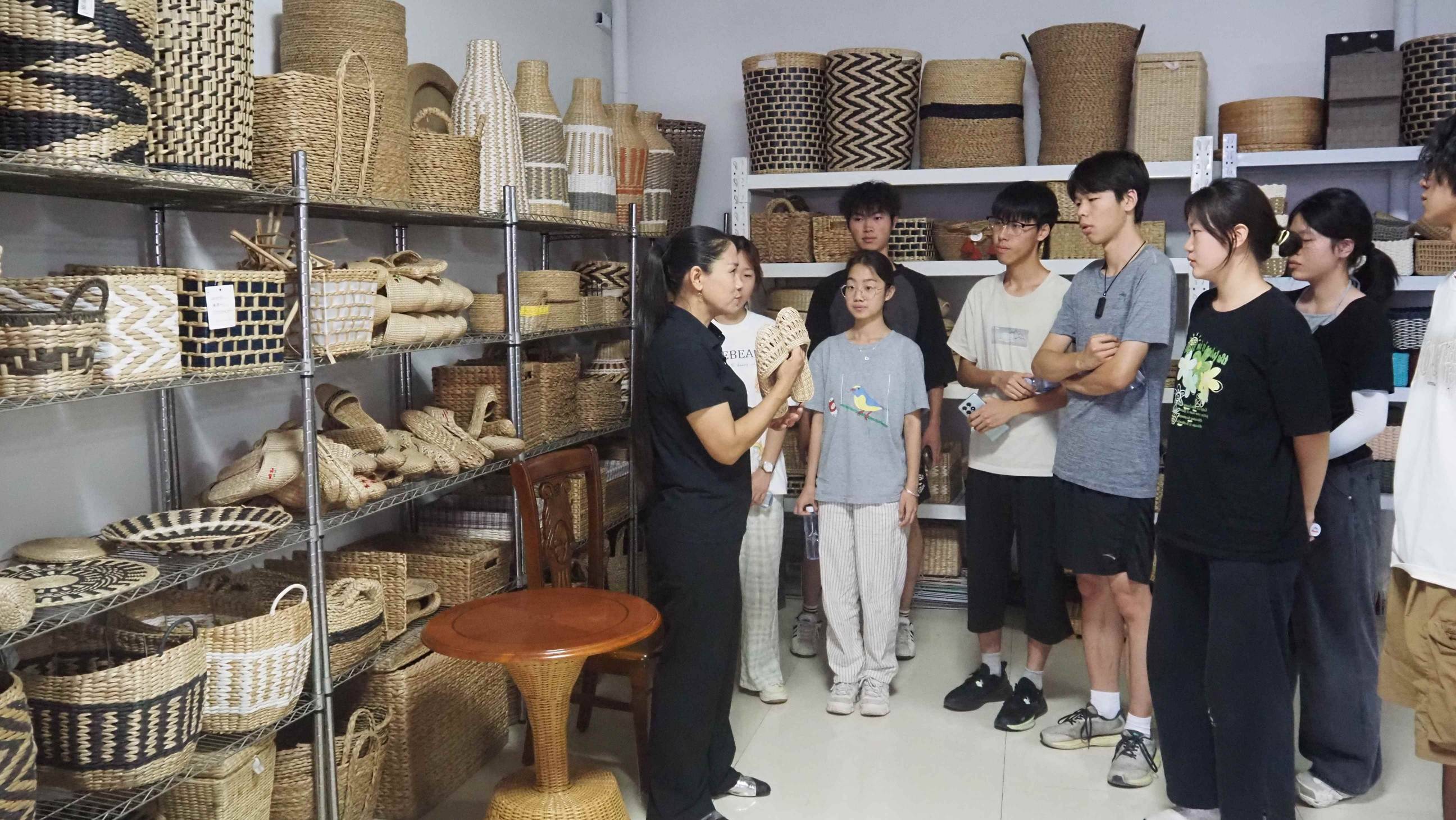 集装箱里的柳编新生:当非遗遇上现代产业在博兴县草柳编工艺品公司,成千上万只黑色的篮子在空地上列队—这些由回收报纸编织的面包篮将出口南非。“我们采用工厂+农户模式,将原料分发给各农户,再从各农户家中回收核检。”负责人指着滚烫的集装箱说。队员们跟着搬运货物时发现,每一件编织货物的标签上,都印刻着编工的编号,“这是对匠人的尊重。”这种兼顾效率与传统的智慧,让小队看到非遗活态传承的可能。从清晨到日落,汗水一次次打湿队员们的衣衫。随着时间的推移,队员们搬运货物也逐渐熟练起来。“当月光照在柳编工艺品上时,突然觉得这些柳条真的有了生命。”队员们说道。