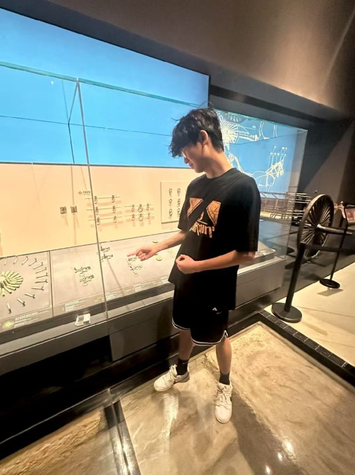 在“楚都遗珍”展厅,战国时期的“越王者旨於睗剑”成为大家关注的焦点。剑身寒光闪烁,精美的错金铭文历经千年依然清晰可见,我和队员们一边惊叹于古代工匠巧夺天工的技艺,一边认真听讲解员讲述它背后的故事。通过讲解,我们深入了解到寿县作为楚国晚期都城的重要历史地位,以及楚国在政治、经济、文化等领域的卓越成就,仿佛穿越时空,回到了那个波澜壮阔的时代。