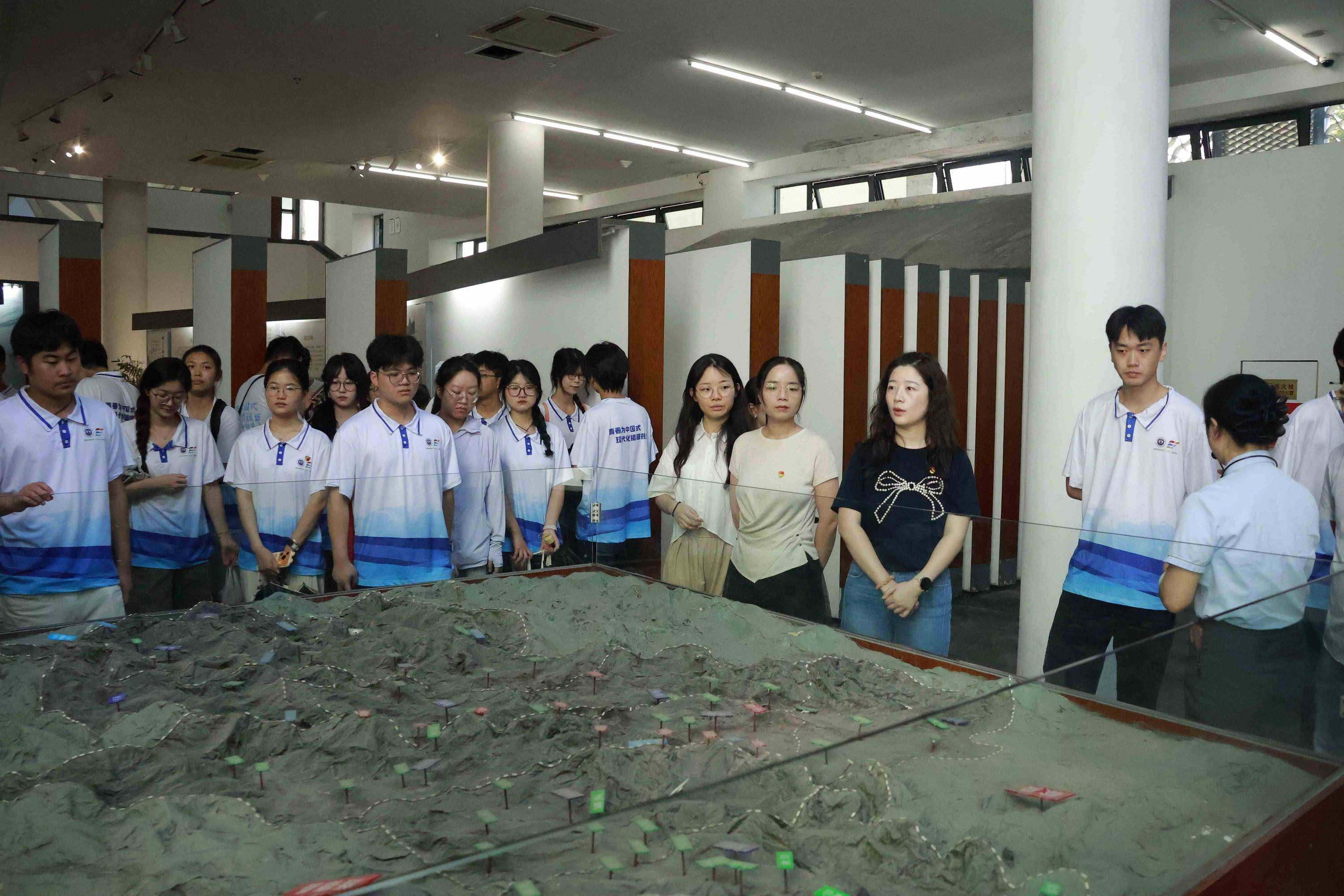 团队首先来到“绩水徽山厅”,这里通过沙盘、多媒体展示等形式,生动地呈现了绩溪独特的地理风貌。绩溪素有“八山半水半分田,一分道路与庄园”之称,复杂的地形地貌孕育了丰富的自然资源,也深刻影响了当地的历史发展与文化形成。成员们认真聆听着讲解员的介绍,仔细观察着沙盘上的山川河流走向,对绩溪的地理环境有了直观而深刻的认识。